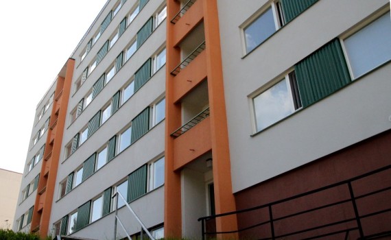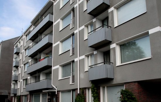 Julkisivusaneeraus Seroporoc-eristerappauksena 50mm villan päälle. Pinnoitus Serpo Jalolaastilla. Parvekekunnostus.