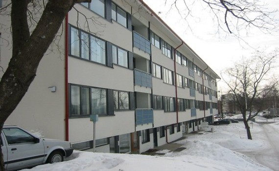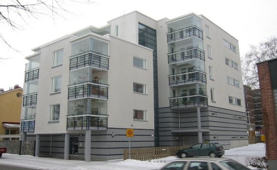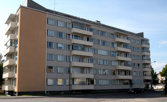 Julkisivusaneeraus Seroporoc-eristerappauksena 50mm villan päälle. Pinnoitus Serpo Jalolaastilla. Parvekekunnostus.