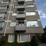Parvekkeiden kunnostus, hieakkapuhallus ja maalaus Tikkurilan Holvi-maalilla. Vanha julkisivu purettiin täysin ja uusi rappaus toteutettiin kolmikerrosrappauksena ja pintamaalilla.